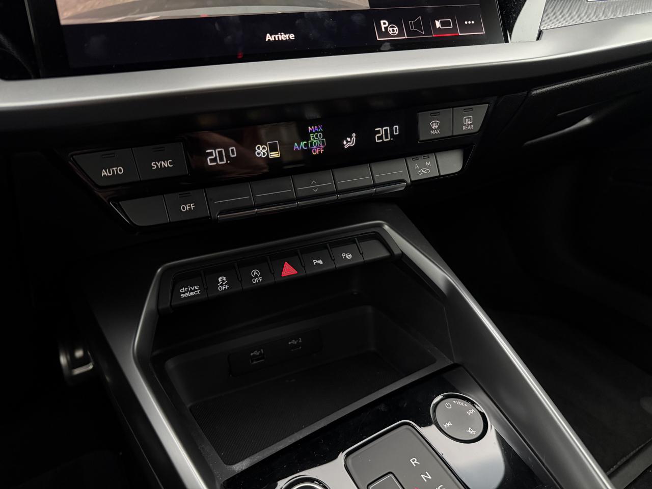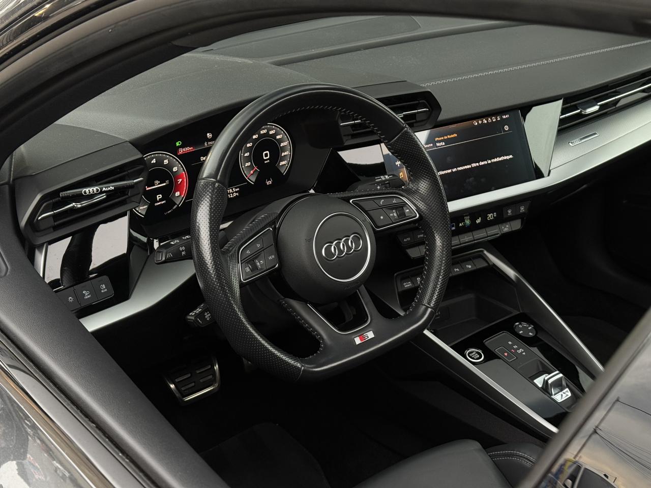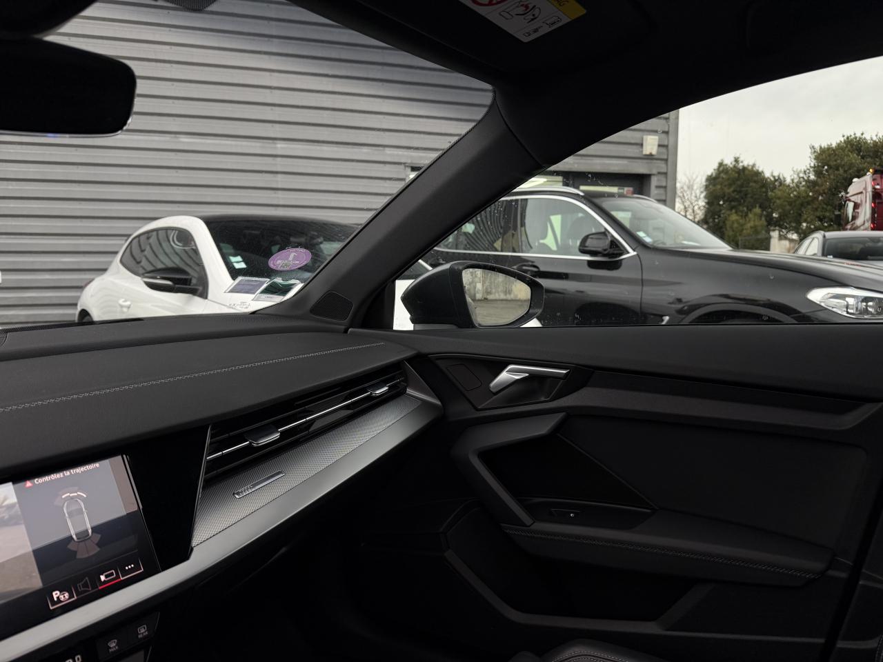 2 prises USB à l'arrièreAccoudoir central coulissant en longueur, avec inclinaison réglableAudi Drive SelectAudi Park AssistAudi sound system : 10 haut-parleurs incluant un haut-parleur central et un subwoofer ; amplificateur à 6 canaux avec une puissance totale de 180 wattsAvertissement de sortie de voieBanquette arrière rabattable 40/60Caméra de reculCiel de pavillon en tissu noirClimatisation automatique confort 2 zonesContrôle de la pression des pneumatiquesDétecteur de pluie et allumage automatique des projecteursDirection assistée électromécanique asservie à la vitesseEcrous antivolInterface BluetoothJantes en alliage léger, 5 branches en Y, Gris Graphite, tournées brillantes, dimension 8,0J x 18 avec pneus 225/40 R18Limiteur de vitesseMMI navigation plus avec MMI touchPack Eclairage intérieurPack extérieur S linePack Intérieur S linePhares à LED avec clignotants dynamiques à l’arrièreRégulateur de vitesseRétroviseur intérieur à position nuit automatique, sans encadrementRétroviseurs extérieurs réglables, dégivrants et rabattables électriquement avec position automatique pour manoeuvre de stationnementSécurité enfant électriqueServices Audi connectSièges avant réglables manuellement