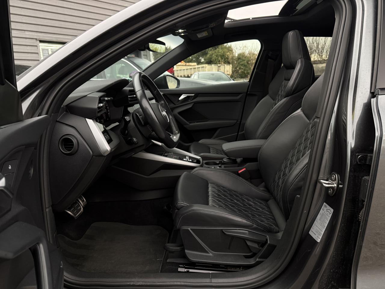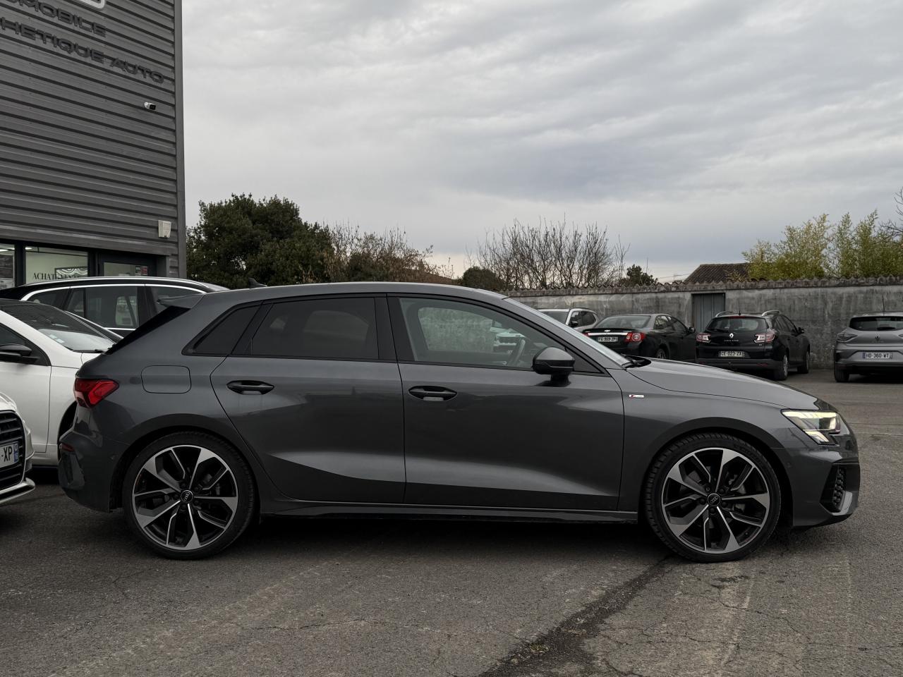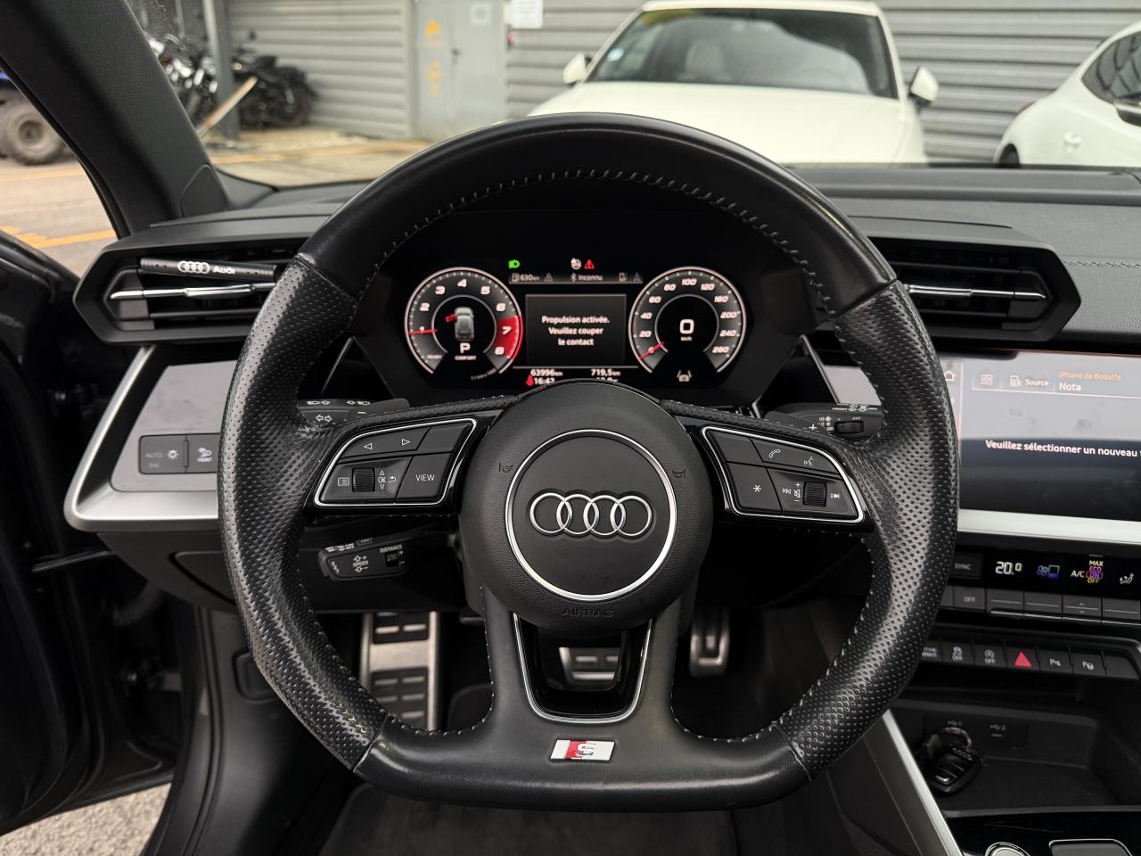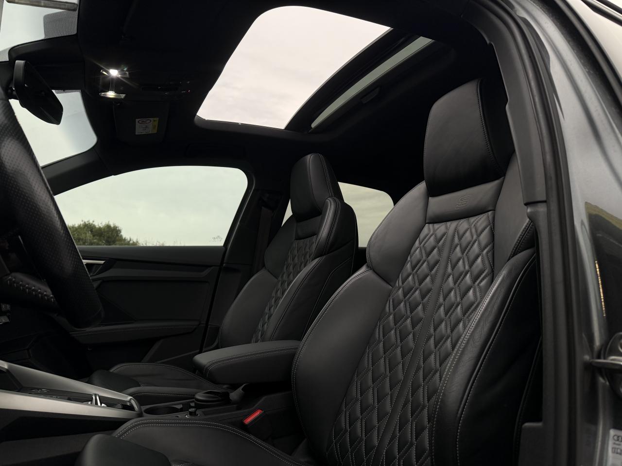 2 prises USB à l'arrièreAccoudoir central coulissant en longueur, avec inclinaison réglableAudi Drive SelectAudi Park AssistAudi sound system : 10 haut-parleurs incluant un haut-parleur central et un subwoofer ; amplificateur à 6 canaux avec une puissance totale de 180 wattsAvertissement de sortie de voieBanquette arrière rabattable 40/60Caméra de reculCiel de pavillon en tissu noirClimatisation automatique confort 2 zonesContrôle de la pression des pneumatiquesDétecteur de pluie et allumage automatique des projecteursDirection assistée électromécanique asservie à la vitesseEcrous antivolInterface BluetoothJantes en alliage léger, 5 branches en Y, Gris Graphite, tournées brillantes, dimension 8,0J x 18 avec pneus 225/40 R18Limiteur de vitesseMMI navigation plus avec MMI touchPack Eclairage intérieurPack extérieur S linePack Intérieur S linePhares à LED avec clignotants dynamiques à l’arrièreRégulateur de vitesseRétroviseur intérieur à position nuit automatique, sans encadrementRétroviseurs extérieurs réglables, dégivrants et rabattables électriquement avec position automatique pour manoeuvre de stationnementSécurité enfant électriqueServices Audi connectSièges avant réglables manuellement