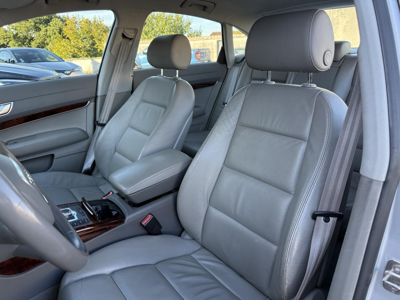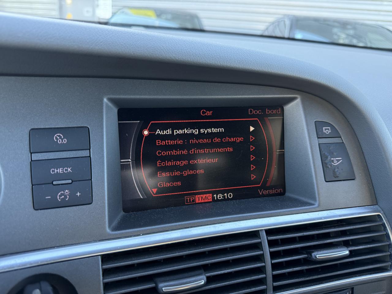 3ème feu stop arrièreABS (Antiblocage de roues)Accoudoir central arrièreAccoudoir central arrière intégré au dossier de banquette arrièreAccoudoir central avant rabattable, avec vide pochesAide au stationnement arrièreAirbagsAirbags de tête AV et AR SideguardAlarme sonore de non extinction des feuxAllume-cigareAntipatinage ASR : empêche le patinage des roues motrices ; assure une motricité optimaleApplications décoratives en ronce de noyer brun satiné sur les contre-portes, le tableau de bord et la console centraleAppuie-tête actifs à l'avantAppuie-tête arrièreBlocage électronique de différentiel (EDS)Boîte à gants grand volume éclairée côté conducteur, avec vide-poches complémentaire, rangement pour nécessaire d'écriture, etc.Capteur de pluieClimatisation automatique à régulation électronique et réglage séparé conducteur/passagerColonne de direction de sécuritéConsole centraleDétecteur de luminosité et de pluie + fonction Coming Home/Leaving HomeDéverrouillage du coffre depuis l'habitacleDossiers banquette AR rabattablesEclairage au niveau des piedsEclairage dans le coffreEclairage intérieur à extinction temporiséeEclaireurs des portesEssuie-glace à intermittence réglableEtui à lunettes sur le module de pavillonFeu de reculFeux antibrouillard arrièreFrein à main électromécanique avec assistance de démarrageGestionnaire de batterie : optimise l'alimentation électrique du véhicule durant la marche et à l'arrêtInstrumentation à éclairage réglableLave-pharesLunette AR dégivranteMiroirs de courtoisie éclairés conducteur et passagerMMI :commande MMI, ecran couleur 7", autoradio , systéme DSP, lecteur et chargeur CDOrdinateur de bord couleur et contrôle AutocheckOutillage de bord dans le coffrePack RangementPare-brise en verre feuilletéPare-soleil gauche et droite rabattables et orientables avec miroir de courtoisie éclairéProgramme de stabilité électronique (ESP)Projecteurs antibrouillardProjecteurs au Xénon Plus, phares à décharge pour feux de croisement et feux de route inclaunt lave-phare et réglage automatique dynamique du site des pharesProtection anti-démarrage "Clétronic" actionné par clé de contact codée et homologuée "SRA 7 clés"Radio intégré au MMi basicRégulateur de vitesseRepose-pied à côté de la pédale d'embrayageRétroviseur intérieur électrochromeRétroviseurs extérieurs couleur carrosserieRétroviseurs extérieurs électriques, escamotables, chauffants et convexesRétroviseurs extérieurs et intérieur jour/nuit automatiques, rétroviseurs extérieurs escamotables électriquement à mémoireRoue de secours avec pneu de taille normaleSécurité enfant sur les portières arrièreSellerie cuir VolterraSièges avant réglable électriquement (contient supports lombaires réglable électriquement) position AV/AR, hauteur et inclinaison d assise, inclinaison de dossierSpots de lecture avant et arrièreSupport lombaire électrique sur sièges AVSystème d'airbags de tête sideguardSystème de navigation avec DVD commandé par le MMI Avec chargeur 6 CD dans la boîte à gants, guidage vocal, affichage de cartes routières et guidage sur l'écran MMI, DVD de navigation Europe fourni et inclut MMI (contient ordinateur de bord couleur)Témoin de coussins gonflablesTémoin de feu antibrouillardTémoin de niveau d'huile et de température d'eauTémoin de projecteurs (croisement, route)Témoin de réserve d'essenceTémoin ESPTriangle de pré-signalisationTrousse de secoursVerrouillage centralisé à télécommandeVide-poches sur dossiers de sièges AVVitres avant et arrière électriques à impulsion avec système ant-ipincementVolant 4 branches gainé de cuirVolant 4 branches réglable en hauteurVolant multifonction en cuir 4 branches