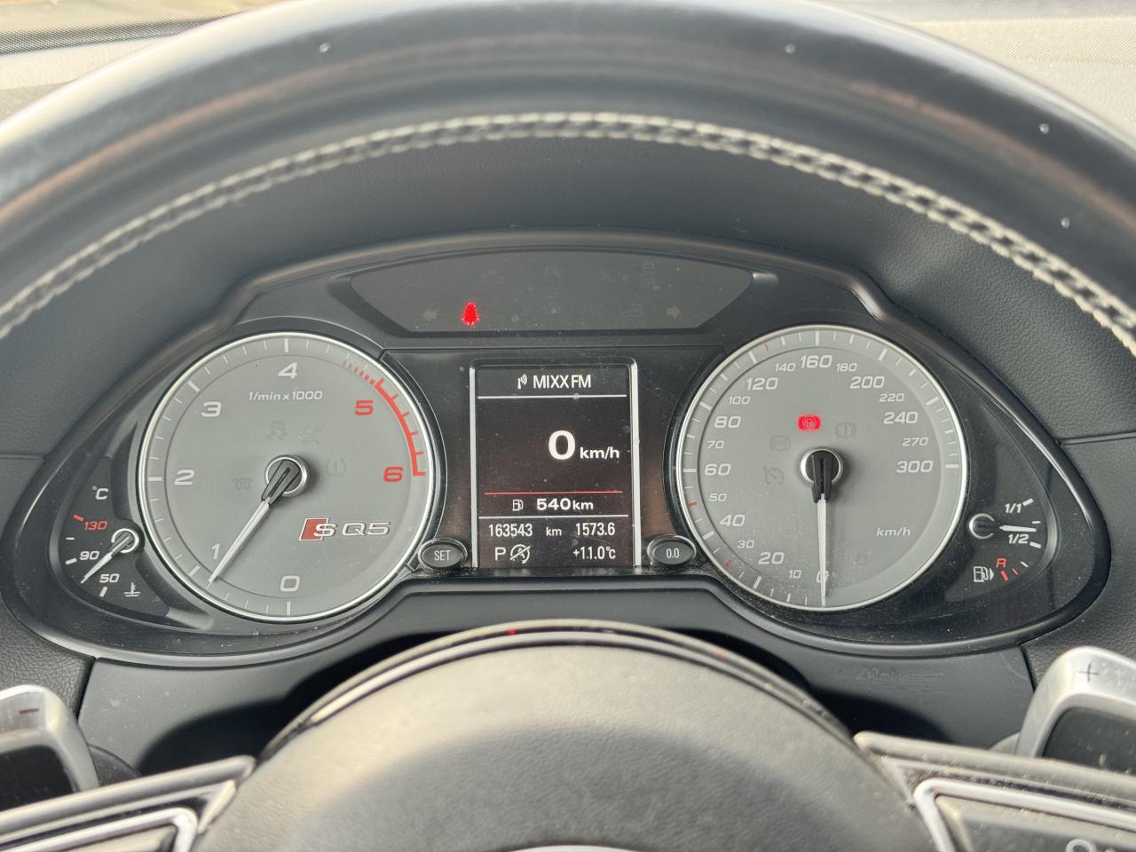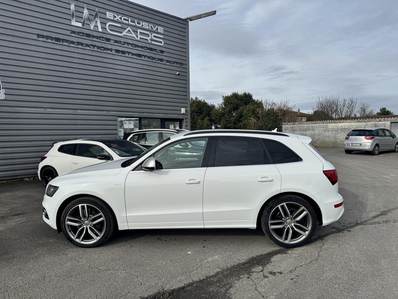 Adaptive Light : projecteurs directionnelsAdvanced Key : système d'autorisation d'accès et de démarrage main libreApplications décoratives en aluminium brossé matAudi connect (inclut GPS Advanced et préparation téléphone 8W)Audi Hold AssistAudi Sound System (180 W)Audi Tracking SystemBadges “V6T” sur les ailes avant et emblème “SQ5” sur les étriers de freinsBanquette arrière rabattable 60/40, déverrouillage à distance des dossiers via un levier dans la garniture latérale du coffreChâssis DynamiqueClimatisation automatique confort 3 zonesContrôle de pression des pneus ( TPMS )Détecteur de pluie et de luminosité incluant rétroviseur intérieur jour/nuit automatiqueDirection assistée électromécanique, direction à crémaillère sans entretien avec asistance asservie à la vitesseHayon assisté électriquement pour l'ouverture et la fermetureInstrumentation, avec éclairage réglable : tachymètre électronique avec compteur kilométrique totalisateur et journalier, compte-tours, heure, affichage de la température du liquide de refroidissement et de la réserve de carburantProjecteurs Xénon Plus incluant lave-phares, feux de jour à LEDQuattro, transmission intégrale permanente avec répartition asymétrique et dynamique de couple, différentiel central autobloquant, blocage électronique de différentiel EDS par intervention sur les freins des roues motricesRégulateur de vitesseRétroviseurs extérieurs : avec clignotants à diodes intégrés, réglables et rabattable électriquement, dégivrants avec coques laquées dans la couleur de carrosserie, miroir asphérique à gaucheSeuils de portes en aluminium avec logo S, protection du seuil de chargement supplémentaire en acier inoxydableSièges avant électriques incluant supports lombaires électriquesSièges avant Sport SSorties d'échappement : chromées, visibles, aplanies, à double flux, deux sorties à gauche et deux à droiteStyle aluminium, dans l'habitacle sur les diffuseurs d'air, enjoliveur autour de l'écran central, commutateurs d'éclairage, bouton de réglage des rétroviseurs extérieurs, frein de stationnement électromécanique, volet roulant de laVitres arrière, custodes et lunette arrière surteintéesVolant airbag Sport en cuir style 3 branches multifonction avec palettes de changement de vitesse tiptronic