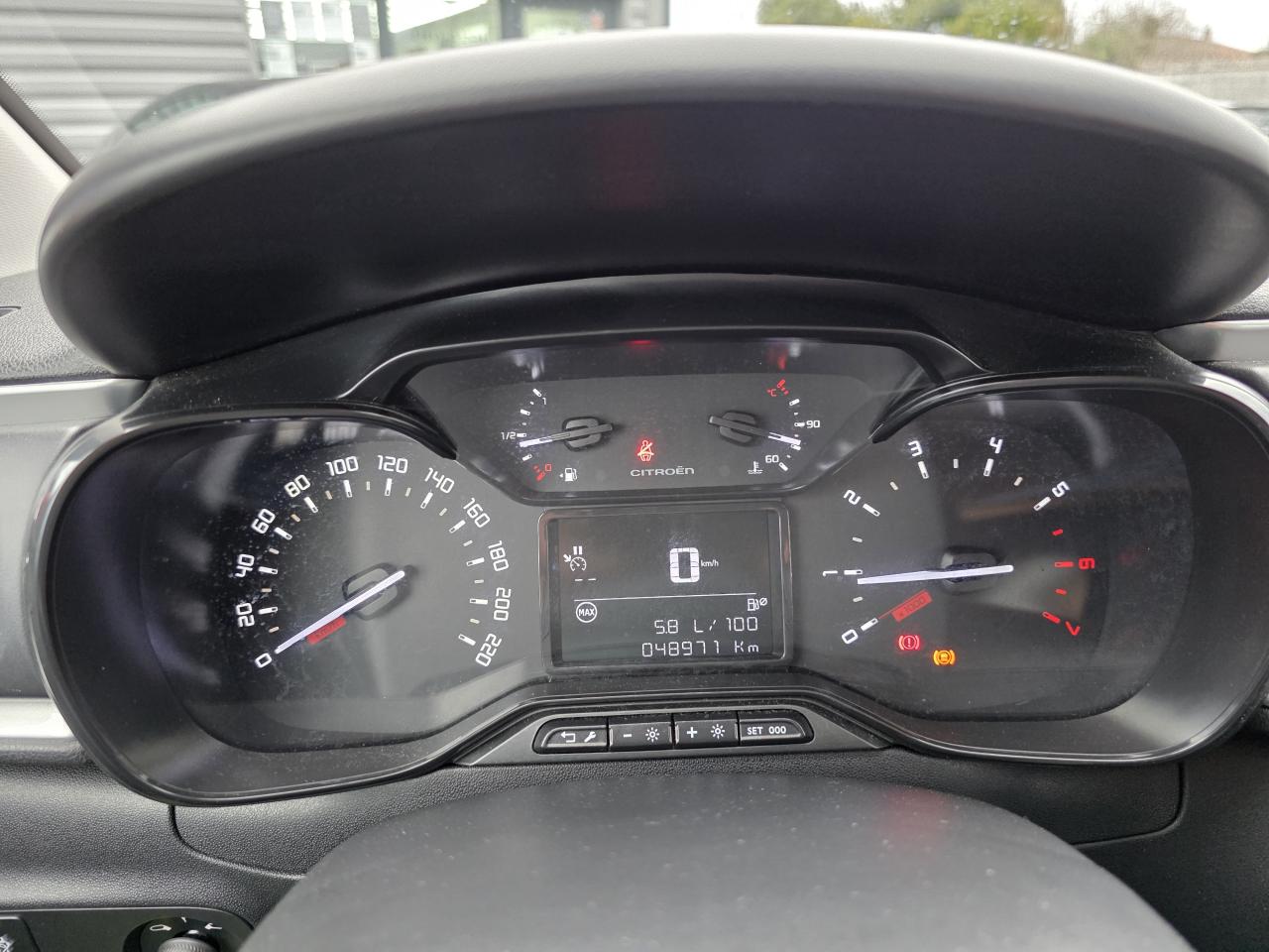 Aide au démarrage en côteAide au stationnement arrièreCITROËN Connect Box avec Pack SOS et assistance inclusCITROËN Connect Nav sur tablette tactile 7"CITROËN Connect Radio sur tablette tactile 7"Climatisation automatique avec fonction filtrage de l'airDétecteur de sous-gonflageFeux arrière à effet 3DFeux diurnes à LEDKit mains libres Bluetooth et prise USBMirror ScreenPlafonnier avant avec lecteurs de carte et LED d'ambianceProjecteurs antibrouillardRégulateur et limiteur de vitesseRétroviseurs extérieurs réglables électriquement et dégivrantsSellerie tissu Mica GreySiège conducteur réglable en hauteurSystème de fixation ISOFIX sur les sièges arrière