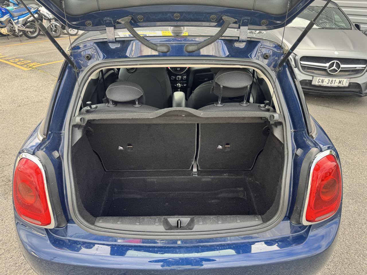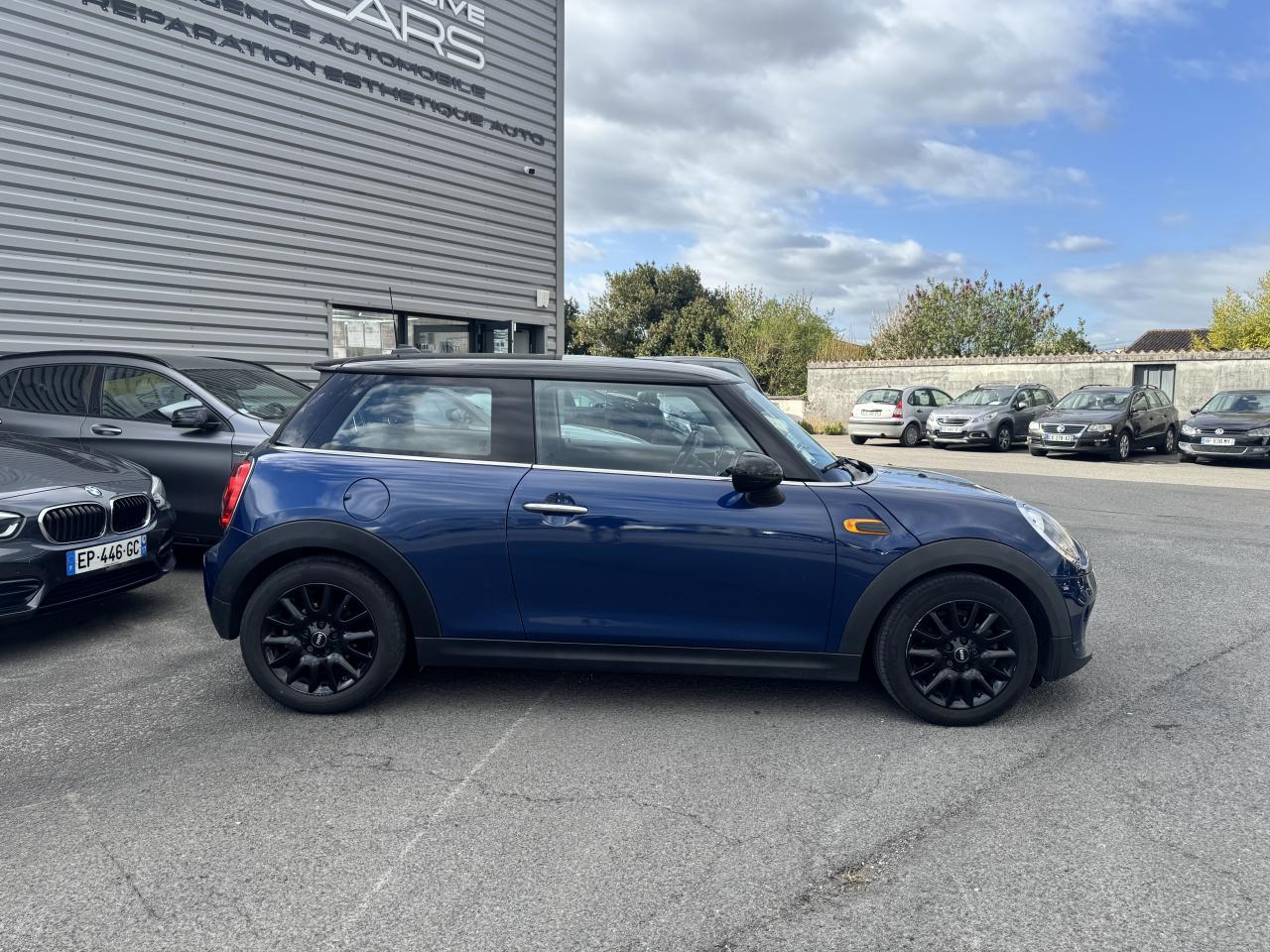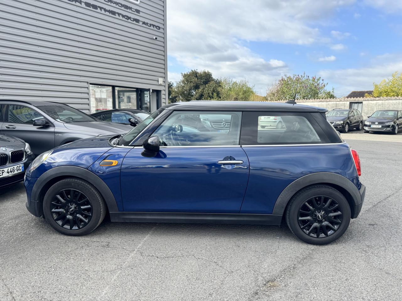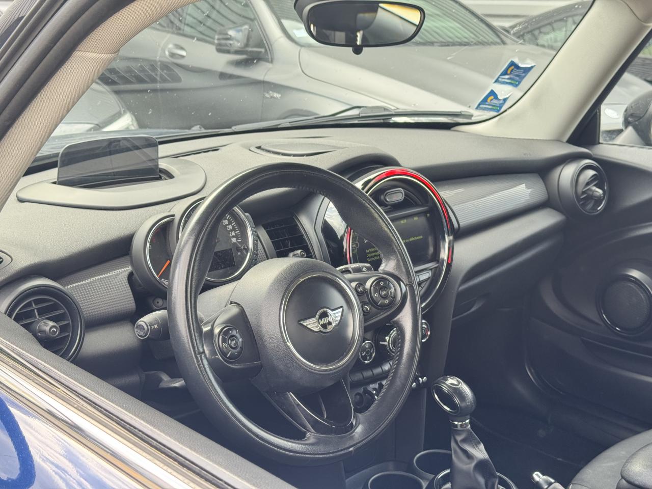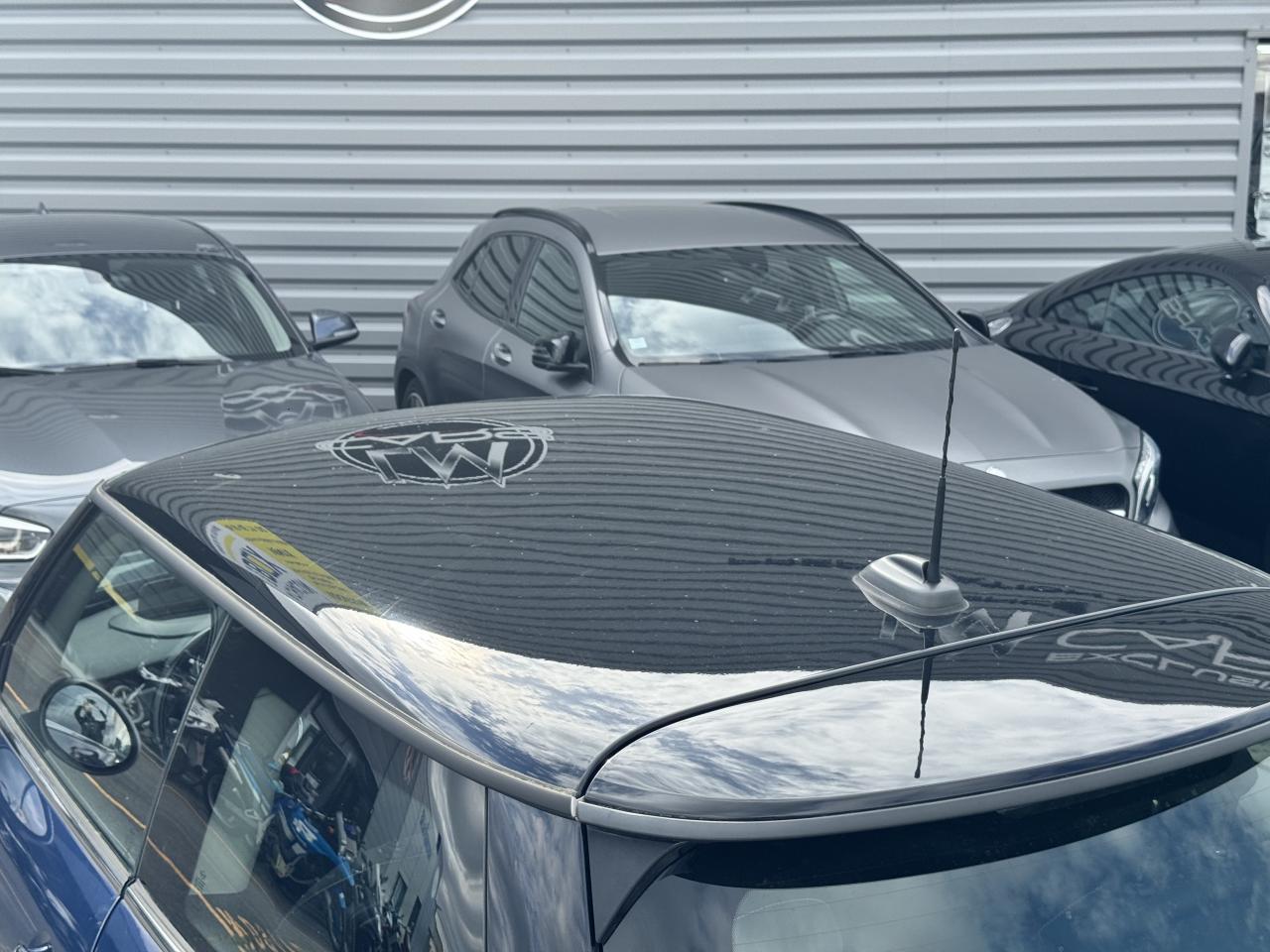 Affichage tête-haute rétractable Autoradio MINI Visual Boost Chrome-Line extérieur Pack Visibilité Système mains-libres Bluetooth avec Snap-in - niveau 2 Teinte de carrosserie métallisée Deep Blue Toit et rétroviseurs noirs