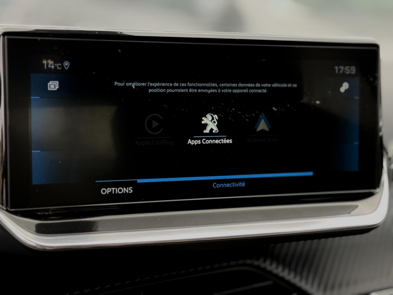 2 prises USB (Recharge type A) sur console basse pour passagers arrière4 poignées de maintien (2 à l'avant et 2 à l'arrière)6 haut-parleurs (2 tweeters et 2 woofers à l'avant et 2 larges bandes à l'arrière)ABS (Antiblocage de roues)AFU (Assistance au freinage d'urgence), REF (Répartiteur Electronique de Freinage)Aide graphique et sonore au stationnement arrièreAide graphique et sonore au stationnement avantAirbags frontaux, latéraux AV et rideauxAlarme de non bouclage des ceintures de sécurité avantAlerte de non-bouclage des ceintures à l'arrièreAllumage automatique des projecteursAppuie-tête avant et arrière (aux 3 places) réglables en hauteurAvertisseur de temps de conduiteBandeau entre feux arrière noir brillantBanquette arrière rabattable 1/3-2/3Boitiers de rétroviseurs extérieurs noir brillantCalandre haut de gamme avec grille supérieure avec marquage Dark Chrome et enjoliveur supérieur noir brillantCeinture de sécurité arrière centrale 3 pointsCeintures de sécurité arrière latérales, avec enrouleurs pyrotechniques et limiteurs d'effortCeintures de sécurité avant avec enrouleurs pyrotechniques et limiteurs d'effortClimatisation automatique mono-zoneCommutation automatique des feux de croisement et de route, Light AssistConsole haute avec accoudoir intégréContrôle de stabilité de la remorque (TSM)Contrôle Dynamique de stabilité (DSC)Démarrage mains libres avec 2 télécommandes 3 boutonsDétecteur de sous-gonflage indirectDirection assistée électriqueEclairage de coffreEclairage intérieur à LED : plafonniers tactiles avant (1 lampe et 2 liseuses) et arrière (2 liseuses), pares-soleils, cave à piedsEclairage polyambient 8 couleursFeux arrière LEDFeux diurnes à LED sous projecteursFilets aumônières au dos des sièges avantFixations ISOFIX Top Tether pour les places latérales arrièreFixations suivant norme ISOFIX sur siège passager avant avec étiquettes de localisationFonction 'Mirror Screen' (Apple Carplay / Android Auto)Fonction BluetoothFrein de stationnement électrique avec aide au démarrage en pente et serrage automatiqueHabitacle et ciel de pavillon noirJantes alliage 17'' CAMDEN avec inserts gris Storm matJupes de pare-chocs arrière inférieure et supérieure noir brillantLécheurs de vitres latérales noir brillantLève-vitres électriques arrière à fonctions séquentielle et anti-pincementLève-vitres électriques avant à commande séquentielle et anti-pincementNavigation 3D connectée avec reconnaissance vocale, écran tactile capacitif 10" HD, 2 prises USB console avant (une DATA Type A et une de recharge type C)Pack Safety PlusPare-brise teinté et acoustiquePassages de roue noir brillantPédalier en aluminiumPEUGEOT Connect SOS & Assistance et TéléservicesPeugeot i-Cockpit 3D avec combiné tête haute numérique 3DPlanche de bord slush surpiquée et panneaux de portes avant avec décors aspect carbone et éclairage polyambiant 8 couleursProjecteurs Peugeot Full LED Technology avec feux diurnes et clignotants avant à LEDRadio Numérique DABRégulateur et limiteur de vitesseRétroviseur intérieur photosensible framelessRétroviseurs extérieurs réglables, rabattables électriquement et dégivrantsRoue de secours de type galetteSélecteur de mode de conduiteSellerie Tri matière Tissu / TEP CAPY, surpiqûres Vert AdamiteSeuils de portes avant en inoxSiège conducteur avec réglage manuel en hauteurSiège passager avant réglable en hauteur manuellementSortie d échappement à droite (Chromée)Surtapis avant et arrière noirs avec surpiqûres Vert AdamiteSystème actif de surveillance d'angle mortSystème de contrôle de trajectoire (ESC) avec fonction antipatinage (ASR)Verrouillage automatique de tous les ouvrants en roulantVisio Park 1 (caméra de recul)Vitres latérales arrière et lunette arrière chauffante temporisée surteintéesVolant compact cuir fleur avec laçage vert, Lion chromé et badge GT et commandes multimédia sur volantVolant réglable en hauteur et en profondeur