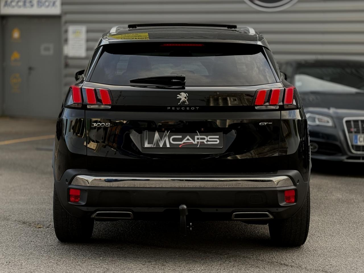 2 spots de lecture à l'arrière4 poignées de maintien rétractables (passagers avant et arrière) et 2 crochets portemanteau à l'arrièreABS avec répartiteur électronique de freinage (REF) et aide au freinage d'urgence (AFU)Accès et démarrage mains-libresAccoudoir central avant à ouverture papillon, avec compartiment de rangement éclairé et réfrigérableAide graphique et sonore au stationnement arrièreAir conditionné automatique bi-zone avec aérateurs aux places arrièreAirbags frontaux conducteur et passager adaptatifsAirbags latéraux conducteur et passager avantAirbags rideaux de tête aux places avant et arrièreAlerte de temps de conduiteAppuis-tête à sécurité optimisée réglables en hauteur sur les sièges conducteur et passager avant ainsi que sur les places arrièresBandeau de pare-choc arrière chroméBanquette rabattable 1/3 - 2/3 (modularité 'Magic Flat' et commandes dans le coffre) avec accoudoir et trappe à skisBarres de seuils de portes avant en inoxBarres de toit longitudinales profilées en aluminiumBoîte à gants floquée et éclairéeBoîtiers de rétroviseurs extérieurs chromésCalandre avec jonc périphérique chrome brillant et satiné, damier chromé et lettrage Peugeot noirCanules d'échappement chroméesCeintures avant à 3 points, réglables en hauteur, avec prétensionneurs et limiteurs d'effortCeintures de sécurité arrière trois points à enrouleur (x3), avec prétensionneurs et limiteurs d'effort aux places latéralesCommande de verrouillage à distance (deux plips)Contrôle dynamique de stabilité CDS avec antipatinage électronique ASRDécors de planche de bord et panneaux de portes 'Grey Oak' (bois véritable chêne gris)Décors intérieurs (baguettes de planche de bord et panneaux de portes, enjoliveur de console, 'Toggle Switches') chrome acierDétection de sous-gonflage indirecteDeux porte-gobelets intégrés à la console centraleDirection assistée électrique, avec colonne de direction réglable en hauteur et profondeur (mécanique)Eclairage intérieur à LEDEcrous antivolEnjoliveurs d'arc de pavillon en inoxEnjoliveurs en inox sur les protecteurs de bas de portesEssuie-glace arrière avec déclenchement automatique en marche arrièreEssuie-vitre avant avec système de lavage 'Magic Wash'Filets aumônières au dos des sièges avantFixations pour trois sièges enfants suivant norme ISOFIX aux places passager avant et latérales arrièreFonction Mirror ScreenFrein de stationnement électrique avec aide au démarrage en penteHabitacle et ciel de pavillon Noir MistralHayon mains libres : volet de coffre motorisé avec accès mains libresIndicateur de rapportInserts d'ailes avant chromésJantes alliage 19" 'Boston' bi-ton diamantées et vernis matJoncs de vitres latérales en inoxKit de dépannage pneumatiqueLève-vitres électriques avant et arrière, séquentiels et antipincementLunette arrière chauffante avec antennes sérigraphiéesMiroirs de courtoisie éclairésPack Drive AssistPack Eclairage d'ambiancePack Safety PlusPack VisibilitéPassages de roues rapportés noirs élargisPédalier et repose-pied conducteur en aluminiumPeugeot ConnectPeugeot i-Cockpit Amplify: choix de 2 ambiances paramétrablesPeugeot i-Cockpit combiné tête haute numérique reconfigurable, écran tactile capacitif 8" et volant compact multi-fonctionsPlafonnier avant avec spots de lecture (x2) et plafonnier arrière à extinction temporiséePlanche de bord surpiquéePlancher de coffre deux positionsPrise USBPrises 12V (x 3)Projecteurs 'Peugeot Full LED Technology'Reconnaissance des panneaux de vitesse et préconisationRégulateur et limiteur de vitesseRétroviseurs extérieur électriques et dégivrantsRétroviseurs extérieurs rabattables électriquement avec 'Lion Spotlight'Sabot de pare-choc avant gris métalliséSellerie TEP & AlcantaraSiège conducteur à réglage lombaireSiège conducteur réglage en hauteurSiège passager à réglage manuel en hauteurSiège passager avant avec mise en tabletteSurtapis aux places avant et arrièreToggle Switches' chromés (touches 'piano' d'activation des fonctions de l'écran tactile)Toit 'Black Diamond' (toit Noir Perla Nera)Verrouillage automatique de tous les ouvrants en roulantVitres électriques AR avec sécurité enfantVitres latérales et lunette arrière surteintéesVolant cuir pleine fleur perforé avec bagues chrome acier et badge GT