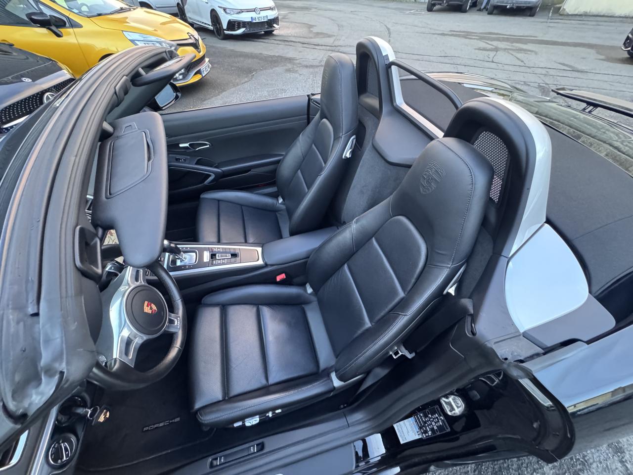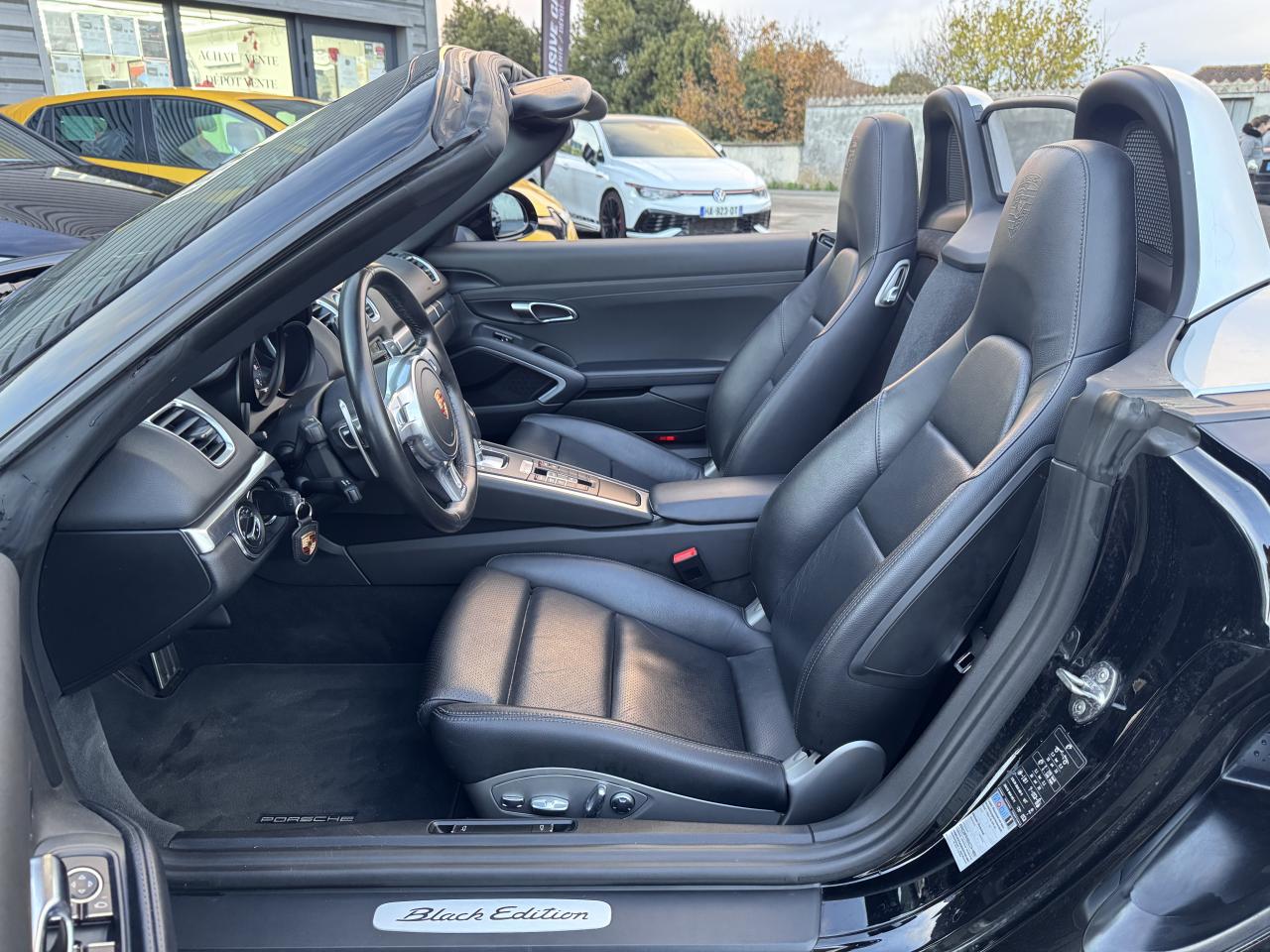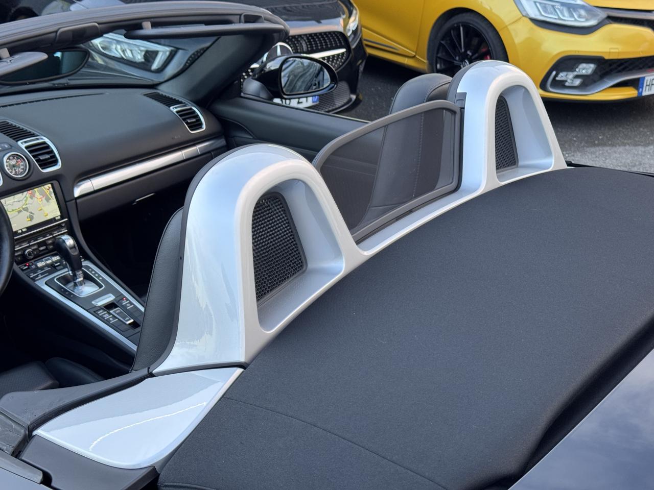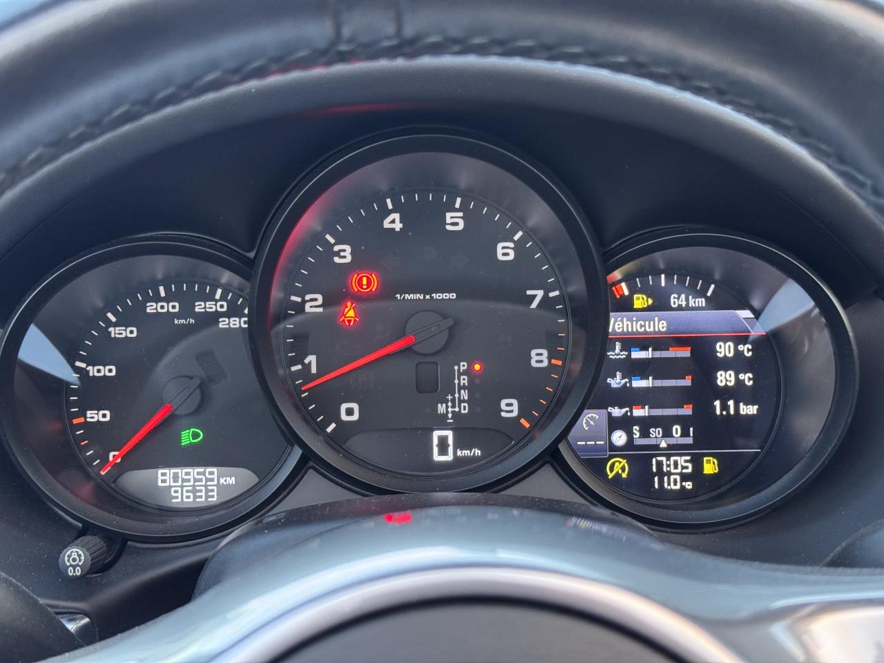 "Eléments en Argent galvanisé : buses d'aération, baguettes décoratives du tableau de bord, cache de la console centrale, poignée de la boîte à gants, poignées d'ouverture des portes, entourage des buses d'aération latAileron arrière à déploiement automatiqueAssistance Parking avant et arrièreBaguettes de seuil de porte avec monogramme "Black Edition"Boîte de vitesse Porsche Doppelkupplung (PDK)Capote électrique (ouverture et fermeture jusqu'à 50 km/h) avec lunette arrière chauffante en verreCapote noirClimatisation à réglages séparés conducteur / passagerConception allégée intelligente en aluminium et acierDirection assistée électromécanique à démultiplication variable et impulsionEcusson Porsche sur les appuie-têteÉtriers : fixes monobloc en aluminium à 4 pistons à l'avant et à l'arrièreEtriers de frein noirsFrein de parking électriqueInterface audio universelle (AUX) logée dans la boîte à gantsJantes « Carrera Classic » 20 pouces en alliage léger avec pneumatiques 235/35 ZR 20 à l'avantJantes « Carrera Classic » 20 pouces en alliage léger avec pneumatiques 265/35 ZR 20 à l'arrièrePack Audio PlusPhares Bi-Xénon avec fonction Porsche Dynamic Light System (PDLS) et réglage dynamique de la portée, intensité d'éclairage asservie à la vitesse, contrôle de faisceau dynamique en virage et lave-pharesPorsche Communication Management (PCM) avec module de navigationPorsche Side Impact Protection System (POSIP) comprenant : protection anti-encastrement latérale dans les portes,airbags thorax intégrés dans les bandes extérieures des sièges avant et airbags de tête intégrés dans les contre-portes pour le condRégulateur de vitesseRétroviseurs extérieurs électriques chauffants, sur les portes, asphérique côté conducteurSièges chauffantsSoubassement carénéStructure renforcée en aluminium, à l'arrièreSystème d'admission à résonanceSystème de stabilisation PSM (Porsche Stability Management) nouvelle génération avec fonctions antiblocage (ABS)Teinte Intérieur NoirTouche « Sport »TPM (contrôle de la pression des pneus)Verrouillage centralisé par télécommandeVitres teintées thermo-isoléesVolant SportDesign réglable électriquement en profondeur et en hauteur
