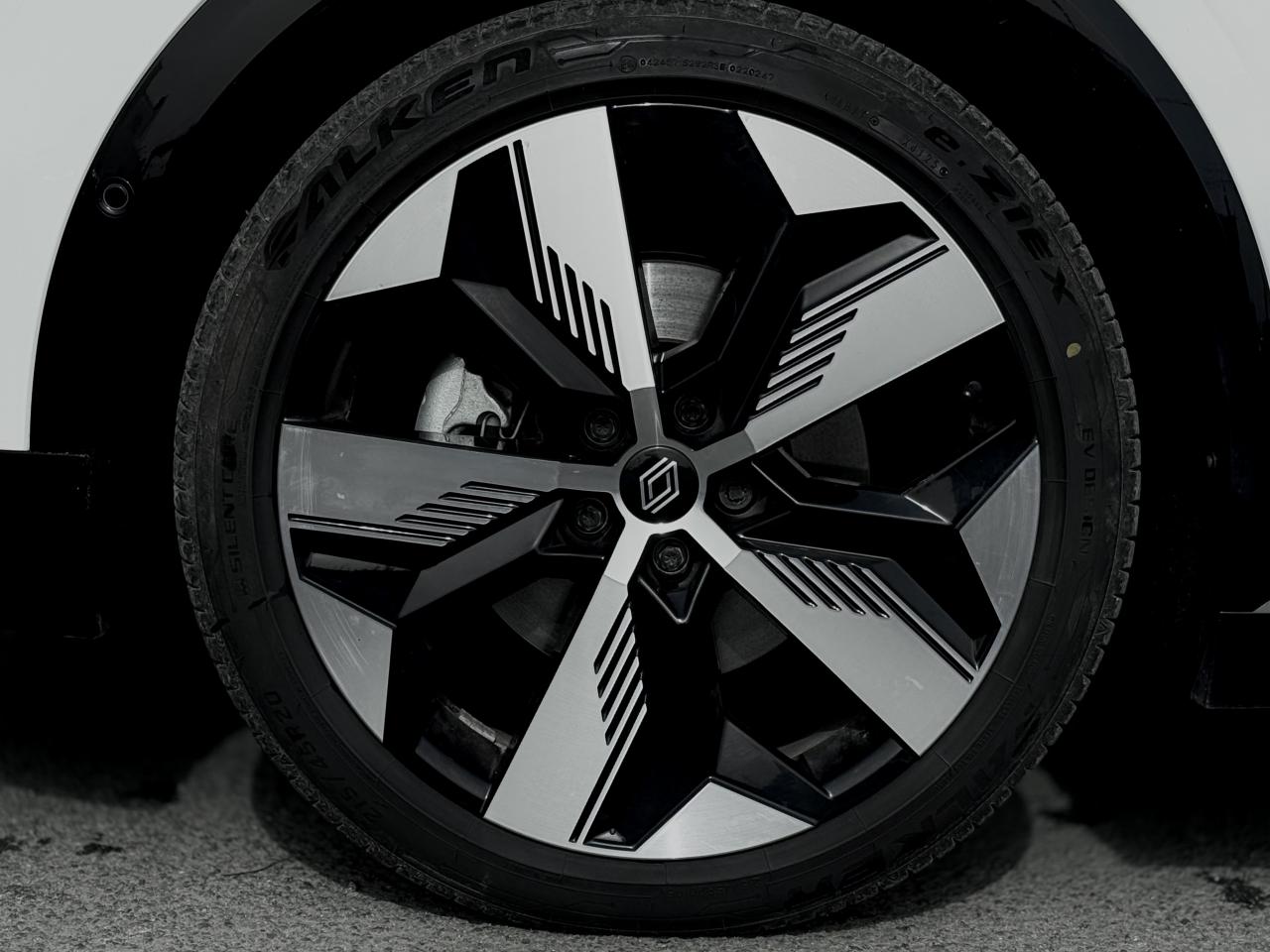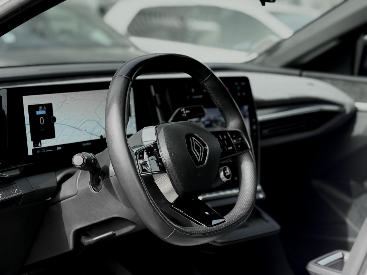Aide au démarrage en côteAide au stationnement arrièreAirbags frontaux conducteur et passager (déconnectable côté passager)Airbags latéraux avant / arrièreAirbags rideaux conducteur et passagerAlerte de franchissement de ligneAlerte distance de sécuritéAntenne de toit « aileron de requin »Appel d'Urgence Renault: appel automatique en cas d'accident ou bouton SOS pour appel (112) en cas d'urgenceAssistant de maintien de voie avec direction active et avertisseur de sortie de voieAuto-update inclus pendant 5 ansAvertisseur sonore pour piétonsBac rangement de câble de recharge dans le coffreCaméra de reculCapteur de pluieCarte mains-libresChargeur de smartphone par inductionCiel de pavillon noirClimatisation automatique bi-zoneConsole de rangement haute avec accoudoirContrôle électronique de trajectoire (ESC)Décoration haut de planche de bord en alcantaraDétecteur de luminositéDirection assistée électrique avec assistance variableDossier de banquette arrière rabattable 2/3 - 1/3Feux antibrouillard arrièreFixations de siège enfant i-Size à l'arrièreFixations i-Size pour le siège passager avantFrein de parking électrique avec fonction Auto-HoldFreinage d'urgence intelligent avec détection piétons, cyclistes et intersectionsFreinage régénératif (4 niveaux) réglable par palettes au volantGestion automatique des feux de route /feux de croisementJantes aluminium 20” SorenLève-vitres électriques impulsionnelsLames F1 avant / arrière ton caisseLecture des panneaux de signalisation avec réglage automatique de la vitesse du régulateur contextuelLiseuses arrière à LEDLiseuses pour les sièges avant à LEDOpenR link 12” avec navigation : système multimédia connecté avec Google intégréOptimisation de batteriePack CityPack extérieur look sportPack infotainment (Google Play avec 3GB inclus)Pack navigation (Google Maps avec fonctionnalités dédiées à l'électrique et Google Assistant) inclus pendant 5 ansPack remote services (via l'application My Renault) inclus pendant 5 ansPanneaux de porte en AlcantaraPeinture Blanc GlacierPlanche de bord textile recycléPoignées de porte avant affleurantes, électriques et automatiquesPompe à chaleurPréconditionnement de la température batterie en roulantProjecteurs antibrouillards avec éclairage adaptatifProjecteurs avant Performance 100 % LED : Renault LED pure visionRégulateur et limiteur de vitesseRéplication smartphone compatible Android Auto & Apple CarPlayRenault Multi-sense : personnalisation des modes de conduite et ambiance lumineuse intérieure (perso / comfort / sport / eco)Sellerie tissu recyclé gris avec bandeau similicuir noir et surpiqûres jaunesSignature lumineuse arrière traversante 3D avec effet moirageSignature lumineuse full LED avantSystème antiblocage des roues (ABS) & aide au freinage d'urgenceSystème d'allumage automatique des pharesSystème de détection de la somnolence du conducteurSystème de surveillance de la pression des pneumatiquesTableau de bord avec écran numérique haute définition 12,3”Traitement sonore Arkamys Auditorium avec 6 haut-parleursVitres arrière surteintéesVolant chauffantVolant cuir