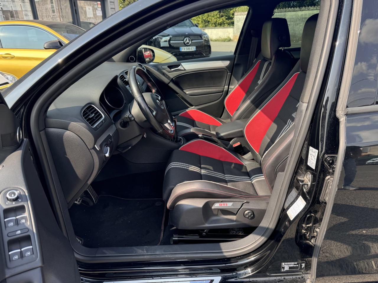 Aide au stationnement avant et arrière avec signaux sonores et visualisation de la distance des obstacles sur l'écran de la radioApplications décoratives ‘Black Stripe'Châssis Sport surbaissé de 15 mmCiel de pavillon noirClimatisation automatique ‘Climatronic' bi-zone, réglable séparément pour conducteur et passagerDifferentiel autobloquant électronique (XDS)Feux arrière teintés à LEDPack ChromePack CityPack RétroviseursPack VisibilitéPalettes de sélection au volant multifonctions 3 branchesPédalier en aluminiumPréparation téléphone BluetoothProjecteurs bi-xénon directionnels et feux de jours à LED pour feux de route et feux de croisement, avec éclairage statique d'intersection, réglage dynamique du site des phares, lave-pharesRétroviseurs extérieurs électriques et dégivrants, asphérique côté conducteurSièges avant sportSièges avant Top sport réglables en hauteur avec réglage lombaireSortie d'échappement chromé à droite et à gauche sur GTISpoiler arrière dans couleur de la carrosserieVitres arrière et lunette arrière surteintées vertes à 65%Volant cuir multifonctions 3 branches avec pommeau et poignée de frein à main en cuir